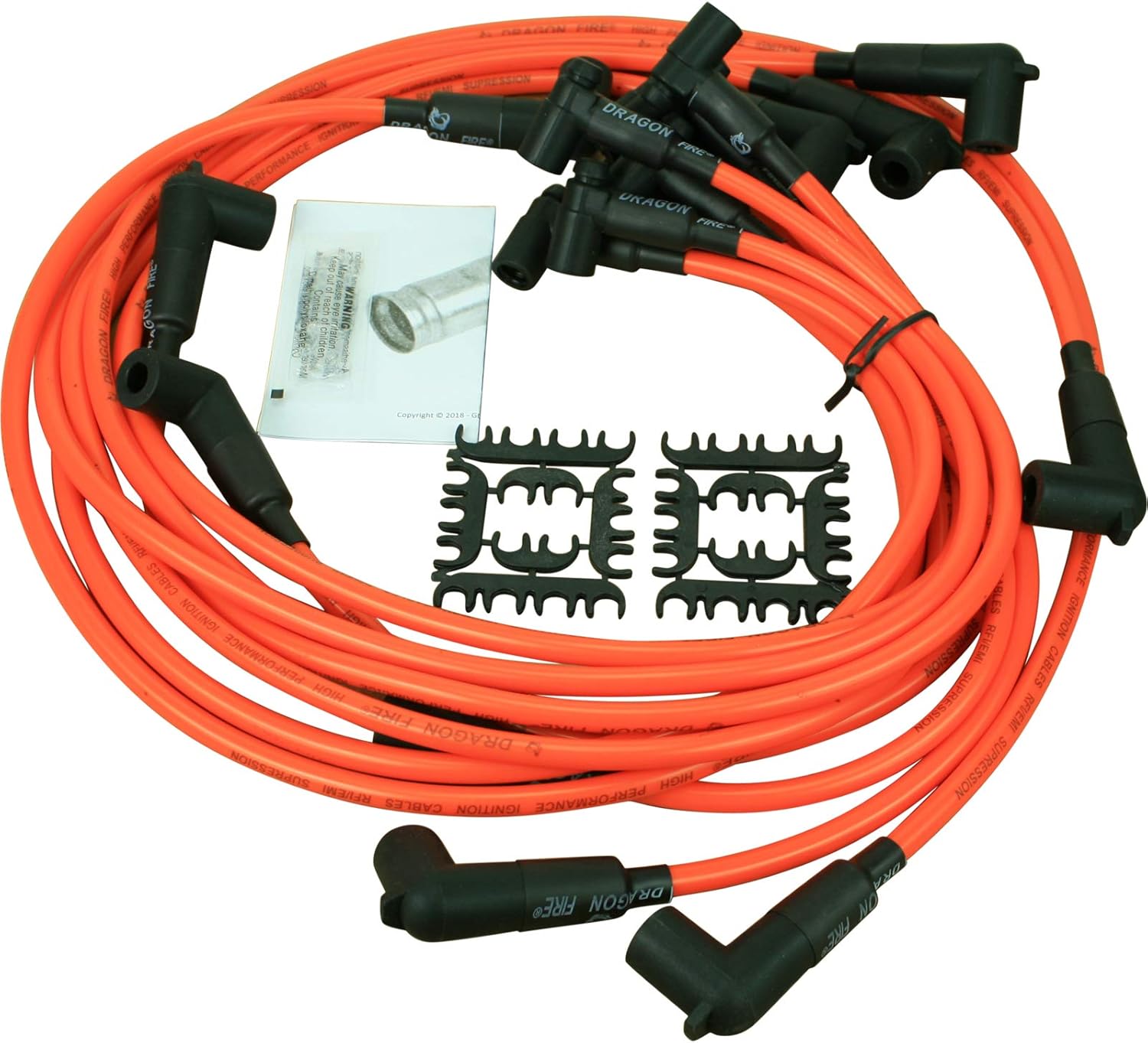 Dragon Fire Performance spark plug wires deliver industry leading performance, quality craftsmanship, and long-term reliability. Dragon Fire Performance spark plug wires utilizes only the latest in spark plug wire technology. At the core of the wires is a strong Kevlar center with a low resistance spiral wound alloy conductor, tightly wrapped for maximum spark energy transmission up to 80,000 VAC. A high dielectric strength co-polymer compound coating is applied to the conductor to help eliminate voltage leaks and Radio/Electromagnetic Frequency Interference (RFI/EMI). The conductor is then fully insulated in a durable, extra thick silicone and EPDM sleeve for superior protection. All terminals are protected by heavy duty extra thick walled high-temp silicone boots. Ensuring optimal spark delivery and long service life. Heat Rated to 600 F. Designed as a direct replacement wire set. *Be sure to check the Fitment Guide to confirm this is the correct part before purchase*** Factory Replacement Part that Meets or Exceeds Original Manufacturer Specifications for the Vehicles Listed.